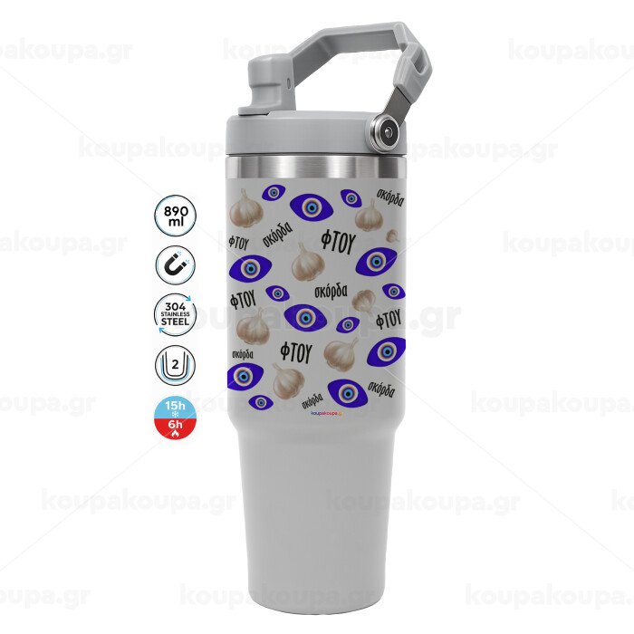 Φτου, φτου, σκόρδα!!!, ΓΚΡΙ χρώματος Θερμός Ανοξείδωτο 890ml (30oz) με χερούλι