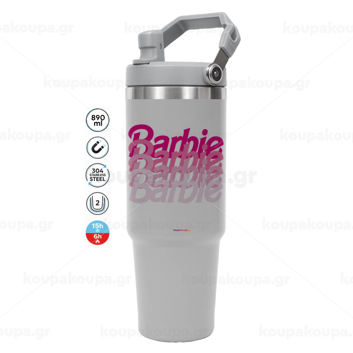 Barbie repeat, ΓΚΡΙ χρώματος Θερμός Ανοξείδωτο 890ml (30oz) με χερούλι