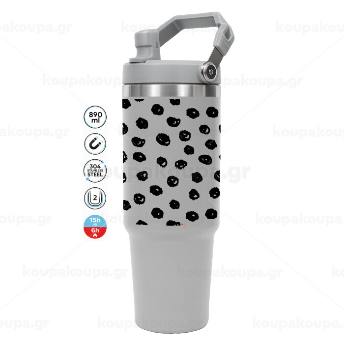 Doodle Dots, ΓΚΡΙ χρώματος Θερμός Ανοξείδωτο 890ml (30oz) με χερούλι