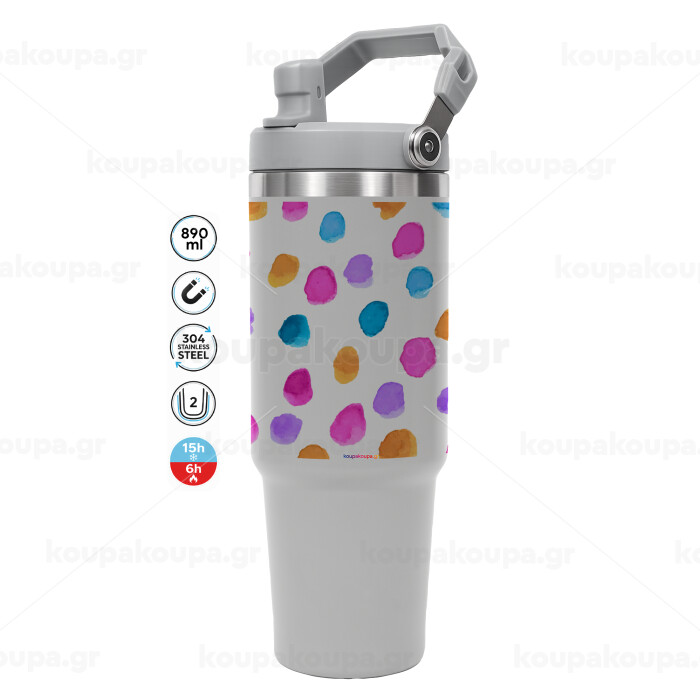 Watercolor dots, ΓΚΡΙ χρώματος Θερμός Ανοξείδωτο 890ml (30oz) με χερούλι