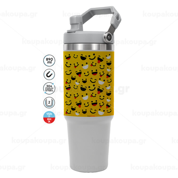 Smilies , ΓΚΡΙ χρώματος Θερμός Ανοξείδωτο 890ml (30oz) με χερούλι