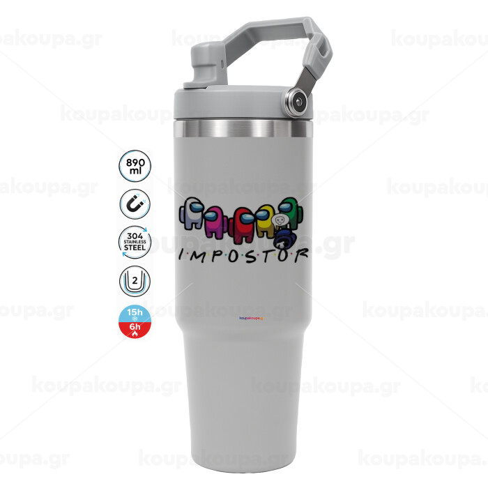 Among US impostor, ΓΚΡΙ χρώματος Θερμός Ανοξείδωτο 890ml (30oz) με χερούλι