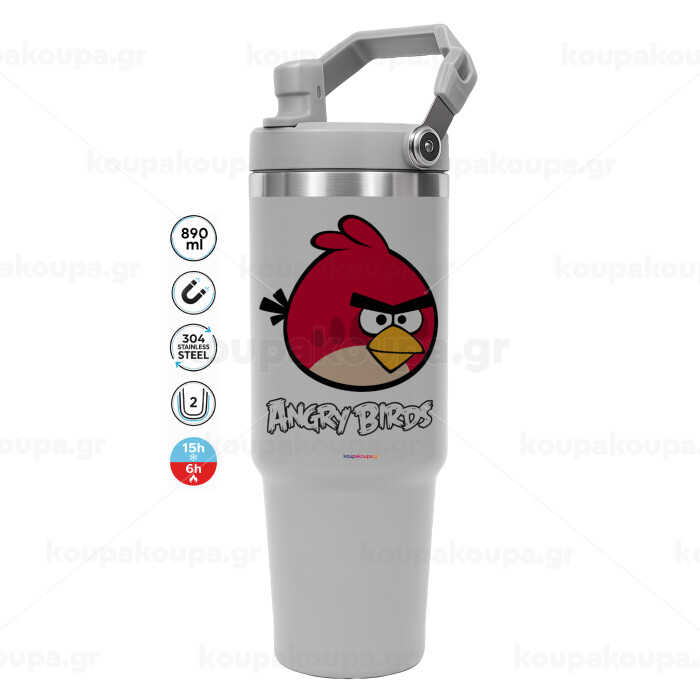 Angry birds Terence, ΓΚΡΙ χρώματος Θερμός Ανοξείδωτο 890ml (30oz) με χερούλι