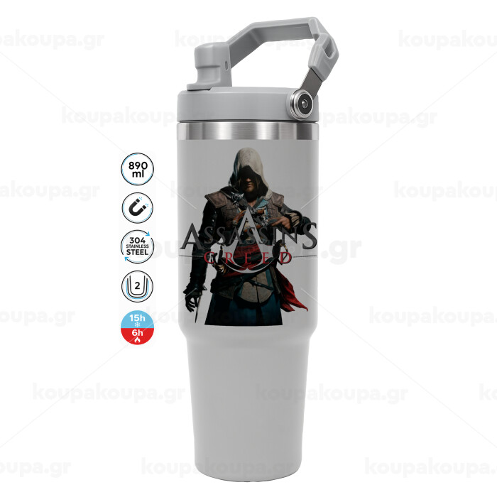 Assassin's Creed, ΓΚΡΙ χρώματος Θερμός Ανοξείδωτο 890ml (30oz) με χερούλι
