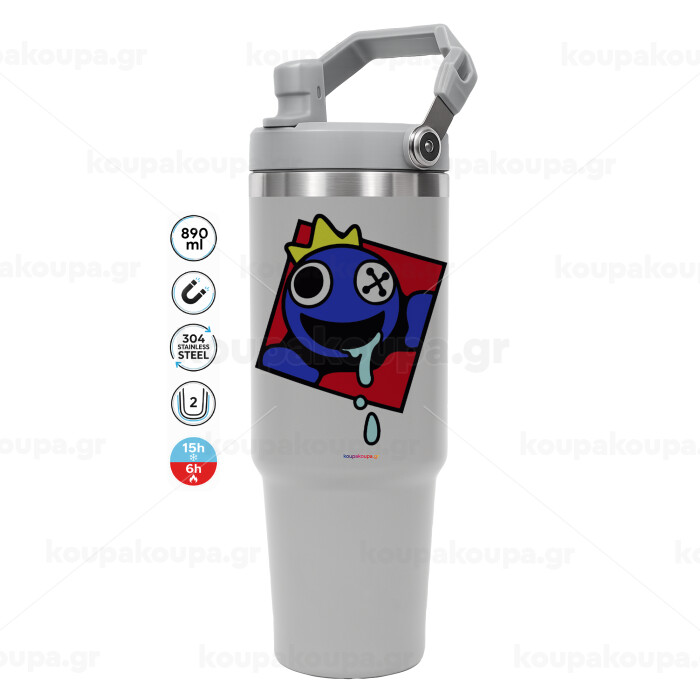 Blue, Rainbow friends, ΓΚΡΙ χρώματος Θερμός Ανοξείδωτο 890ml (30oz) με χερούλι