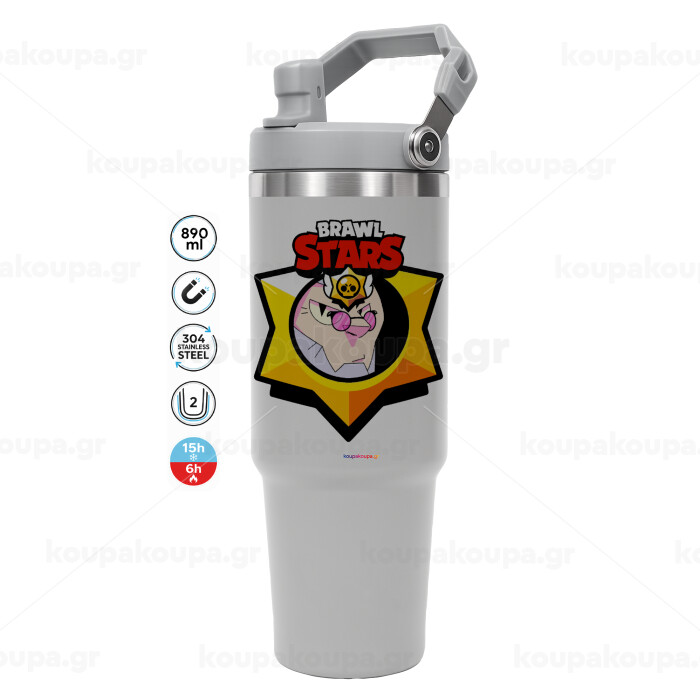 Brawl Stars Byron, ΓΚΡΙ χρώματος Θερμός Ανοξείδωτο 890ml (30oz) με χερούλι