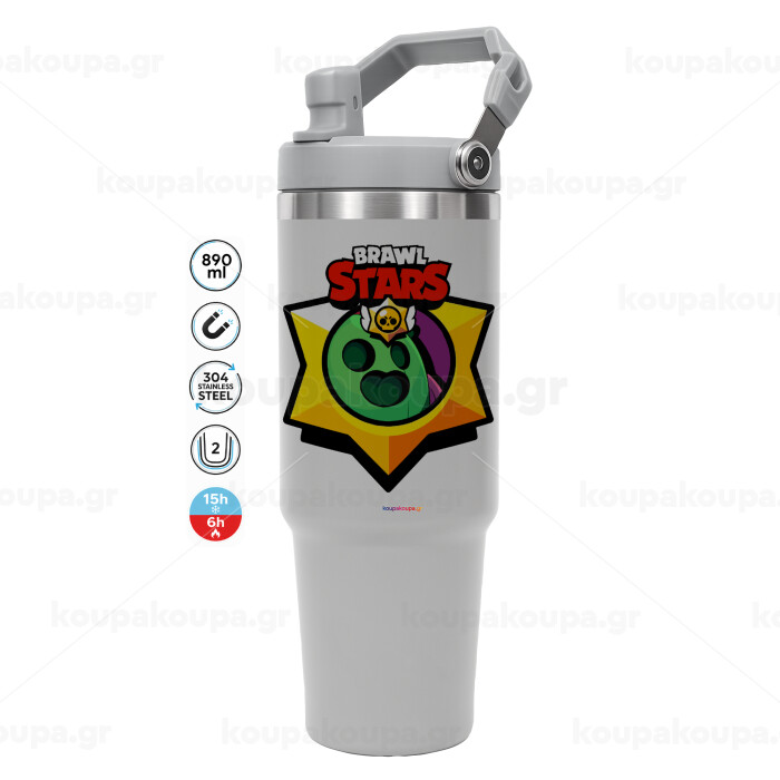 Brawl Stars Spike, ΓΚΡΙ χρώματος Θερμός Ανοξείδωτο 890ml (30oz) με χερούλι