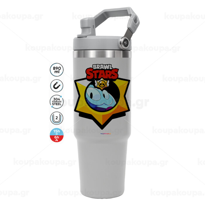 Brawl Stars Squeak, ΓΚΡΙ χρώματος Θερμός Ανοξείδωτο 890ml (30oz) με χερούλι