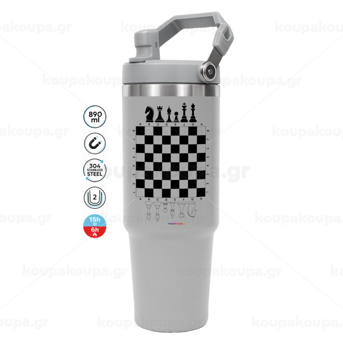 Σκάκι, ΓΚΡΙ χρώματος Θερμός Ανοξείδωτο 890ml (30oz) με χερούλι