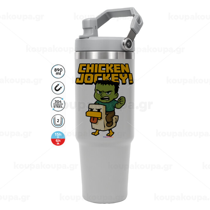 Chicken Jockey, ΓΚΡΙ χρώματος Θερμός Ανοξείδωτο 890ml (30oz) με χερούλι