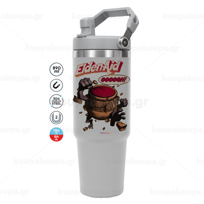 Elden-Aid, Elden Ring inspired , ΓΚΡΙ χρώματος Θερμός Ανοξείδωτο 890ml (30oz) με χερούλι
