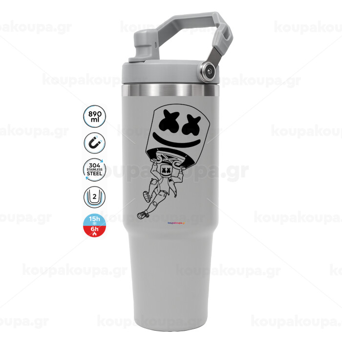 Fortnite Marshmello, ΓΚΡΙ χρώματος Θερμός Ανοξείδωτο 890ml (30oz) με χερούλι