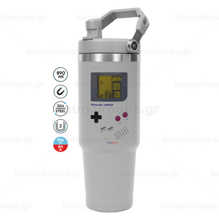 Gameboy, ΓΚΡΙ χρώματος Θερμός Ανοξείδωτο 890ml (30oz) με χερούλι