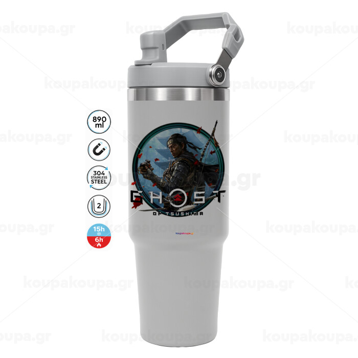 Ghost of Tsushima, ΓΚΡΙ χρώματος Θερμός Ανοξείδωτο 890ml (30oz) με χερούλι