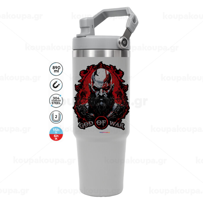 God of war, ΓΚΡΙ χρώματος Θερμός Ανοξείδωτο 890ml (30oz) με χερούλι