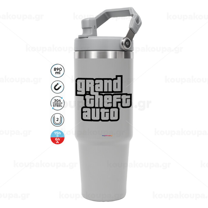GTA (grand theft auto), ΓΚΡΙ χρώματος Θερμός Ανοξείδωτο 890ml (30oz) με χερούλι