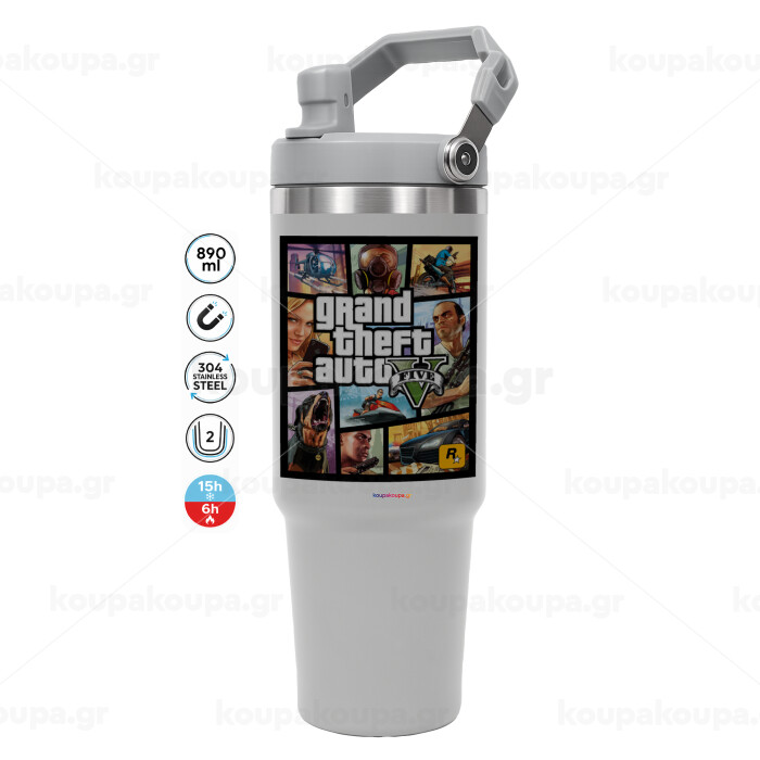 GTA V, ΓΚΡΙ χρώματος Θερμός Ανοξείδωτο 890ml (30oz) με χερούλι