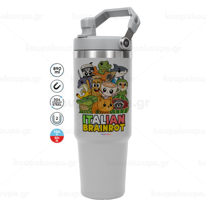Italian Brainrot friends, ΓΚΡΙ χρώματος Θερμός Ανοξείδωτο 890ml (30oz) με χερούλι