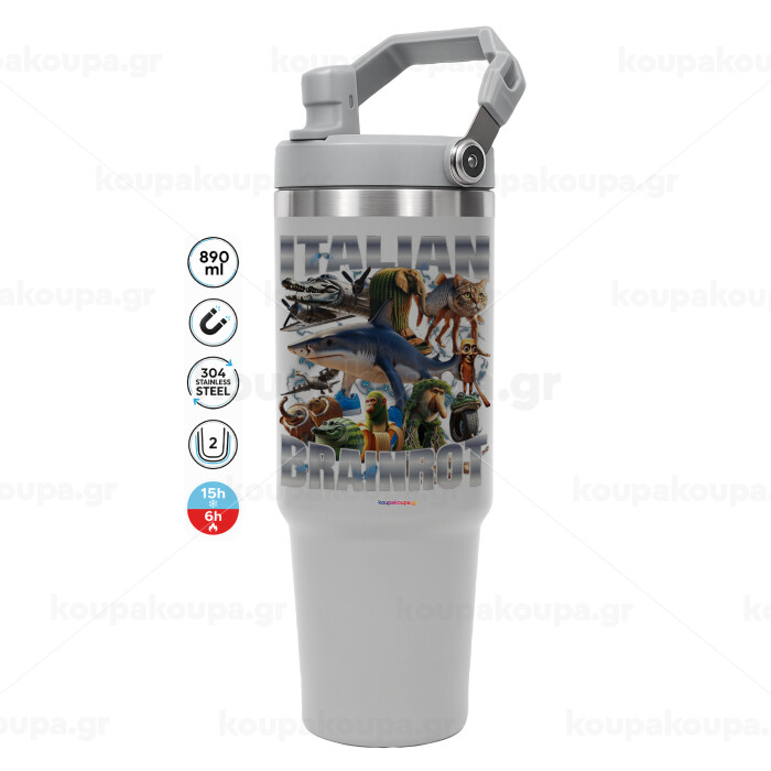 Italian Brainrot, ΓΚΡΙ χρώματος Θερμός Ανοξείδωτο 890ml (30oz) με χερούλι
