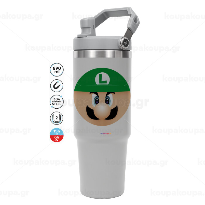 Luigi flat, ΓΚΡΙ χρώματος Θερμός Ανοξείδωτο 890ml (30oz) με χερούλι