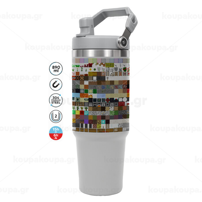 Minecraft blocks, ΓΚΡΙ χρώματος Θερμός Ανοξείδωτο 890ml (30oz) με χερούλι