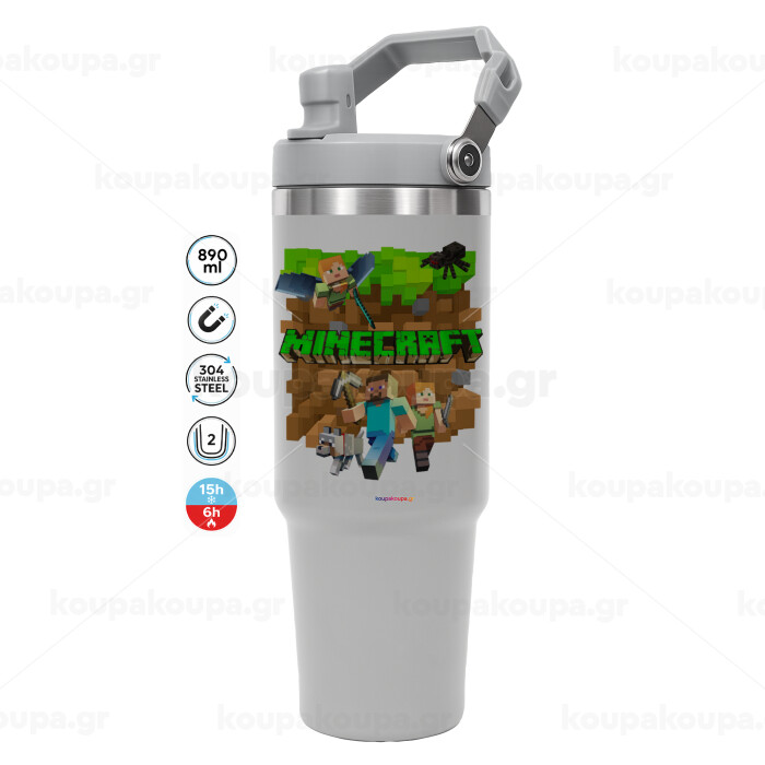 Minecraft characters, ΓΚΡΙ χρώματος Θερμός Ανοξείδωτο 890ml (30oz) με χερούλι