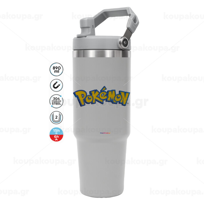 Pokemon, ΓΚΡΙ χρώματος Θερμός Ανοξείδωτο 890ml (30oz) με χερούλι