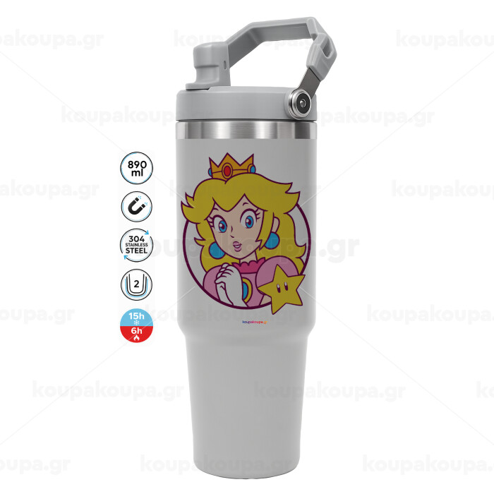 Princess Peach, ΓΚΡΙ χρώματος Θερμός Ανοξείδωτο 890ml (30oz) με χερούλι