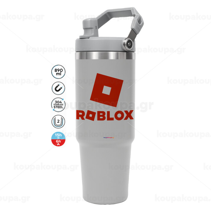 Roblox red, ΓΚΡΙ χρώματος Θερμός Ανοξείδωτο 890ml (30oz) με χερούλι