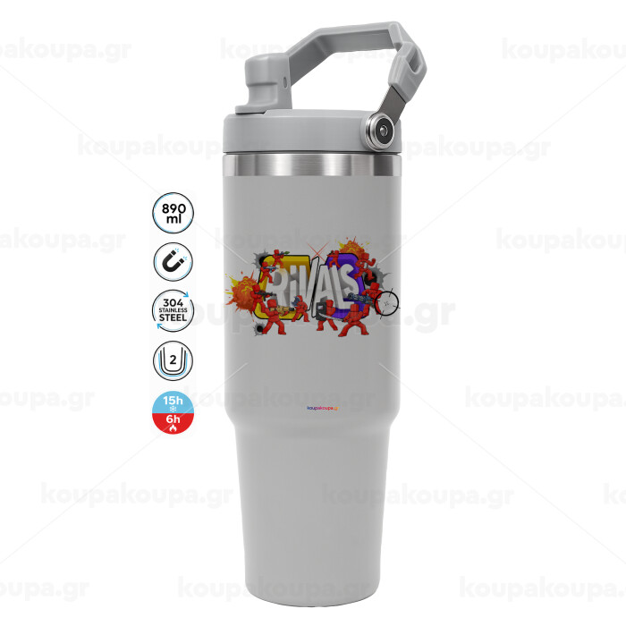 Roblox Rivals, ΓΚΡΙ χρώματος Θερμός Ανοξείδωτο 890ml (30oz) με χερούλι