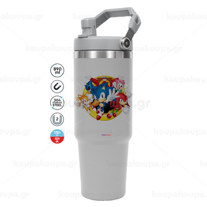 Sonic and friends, ΓΚΡΙ χρώματος Θερμός Ανοξείδωτο 890ml (30oz) με χερούλι