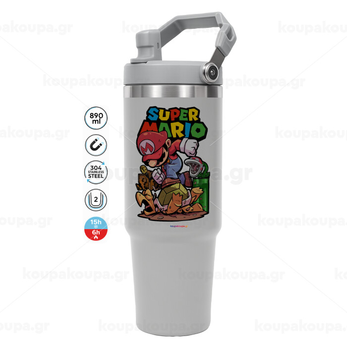 Super mario Jump, ΓΚΡΙ χρώματος Θερμός Ανοξείδωτο 890ml (30oz) με χερούλι
