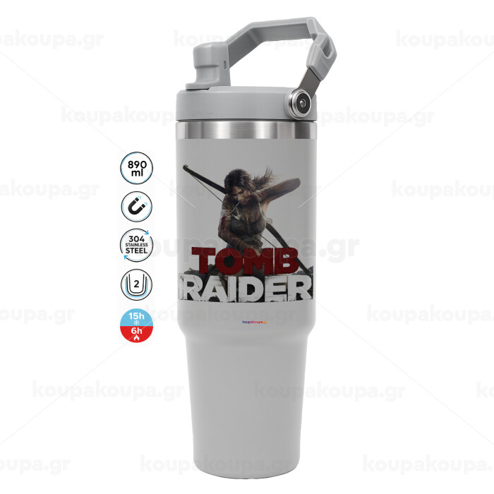 Tomb raider, ΓΚΡΙ χρώματος Θερμός Ανοξείδωτο 890ml (30oz) με χερούλι