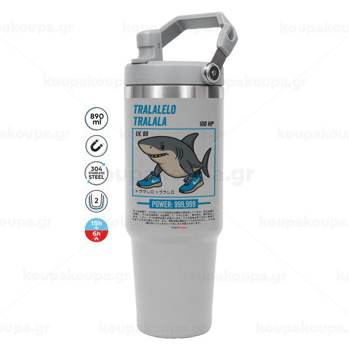 Tralalero Tralala, ΓΚΡΙ χρώματος Θερμός Ανοξείδωτο 890ml (30oz) με χερούλι