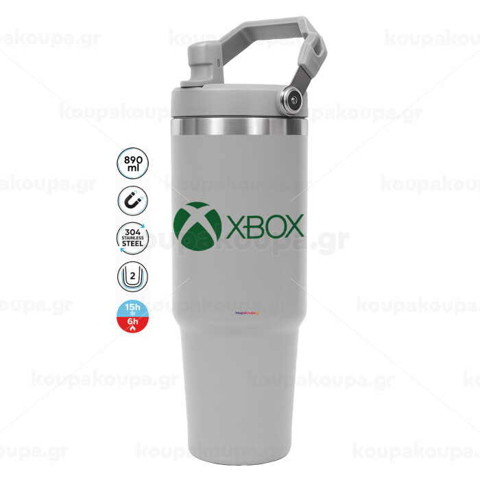 xbox, ΓΚΡΙ χρώματος Θερμός Ανοξείδωτο 890ml (30oz) με χερούλι