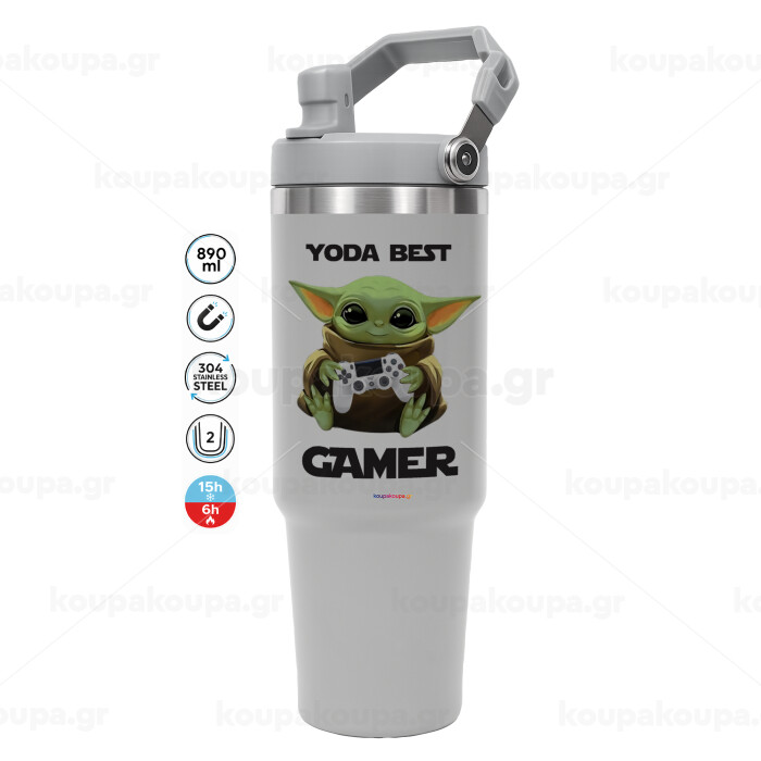 Yoda Best Gamer, ΓΚΡΙ χρώματος Θερμός Ανοξείδωτο 890ml (30oz) με χερούλι
