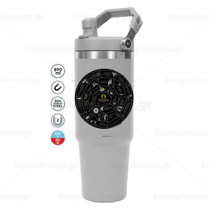 Προχίστορας, ΓΚΡΙ χρώματος Θερμός Ανοξείδωτο 890ml (30oz) με χερούλι