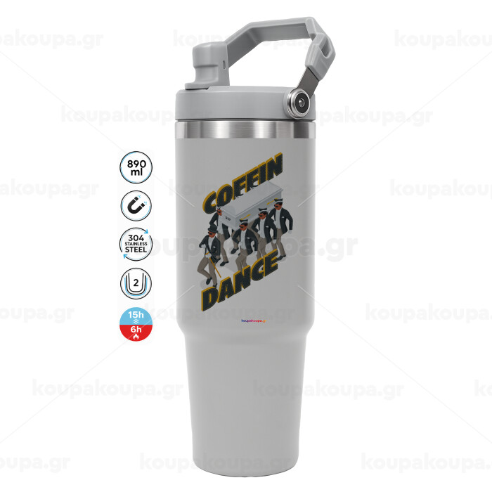 Coffin Dance!, ΓΚΡΙ χρώματος Θερμός Ανοξείδωτο 890ml (30oz) με χερούλι