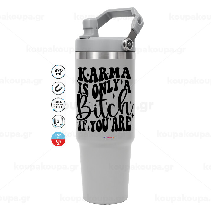 Karma is Only A Bitch if You Are, ΓΚΡΙ χρώματος Θερμός Ανοξείδωτο 890ml (30oz) με χερούλι