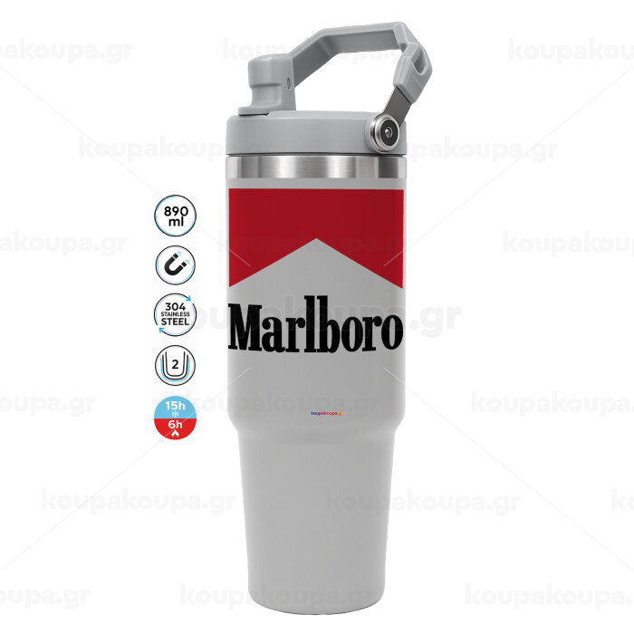 Marlboro, ΓΚΡΙ χρώματος Θερμός Ανοξείδωτο 890ml (30oz) με χερούλι