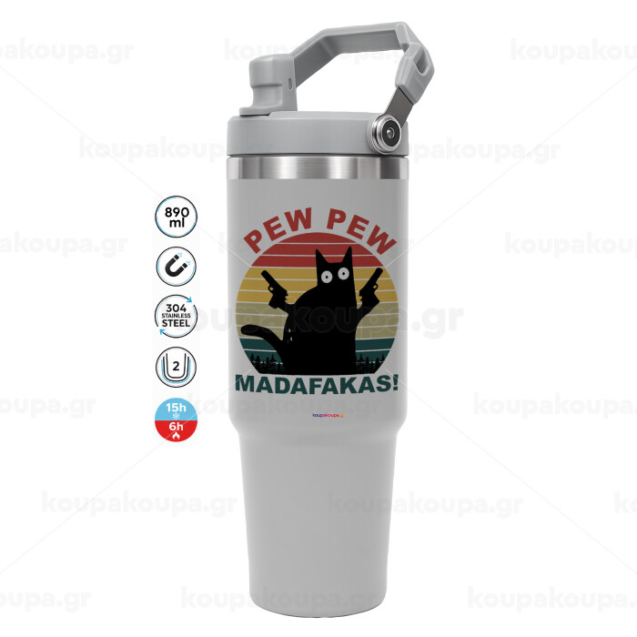 PEW PEW madafakas, ΓΚΡΙ χρώματος Θερμός Ανοξείδωτο 890ml (30oz) με χερούλι