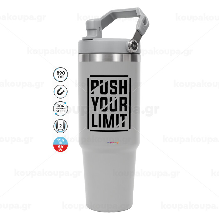 Push your limit, ΓΚΡΙ χρώματος Θερμός Ανοξείδωτο 890ml (30oz) με χερούλι