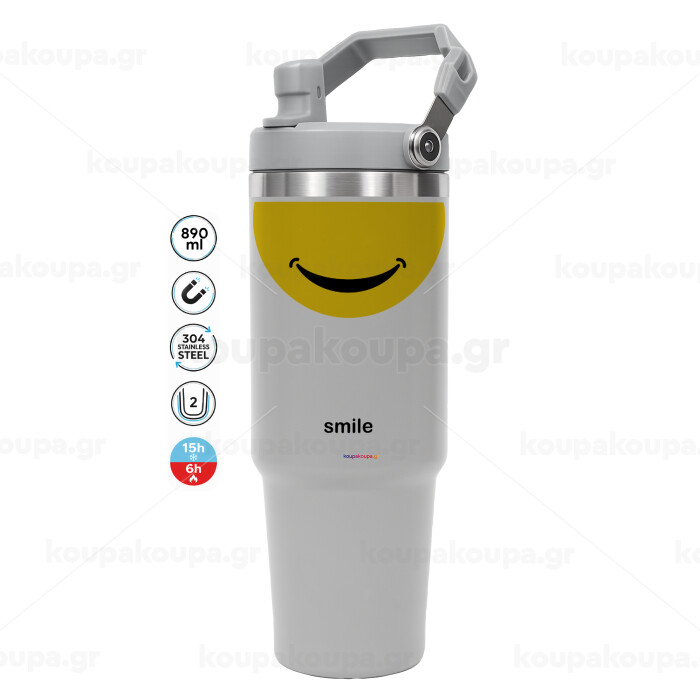 Smile Mug, ΓΚΡΙ χρώματος Θερμός Ανοξείδωτο 890ml (30oz) με χερούλι