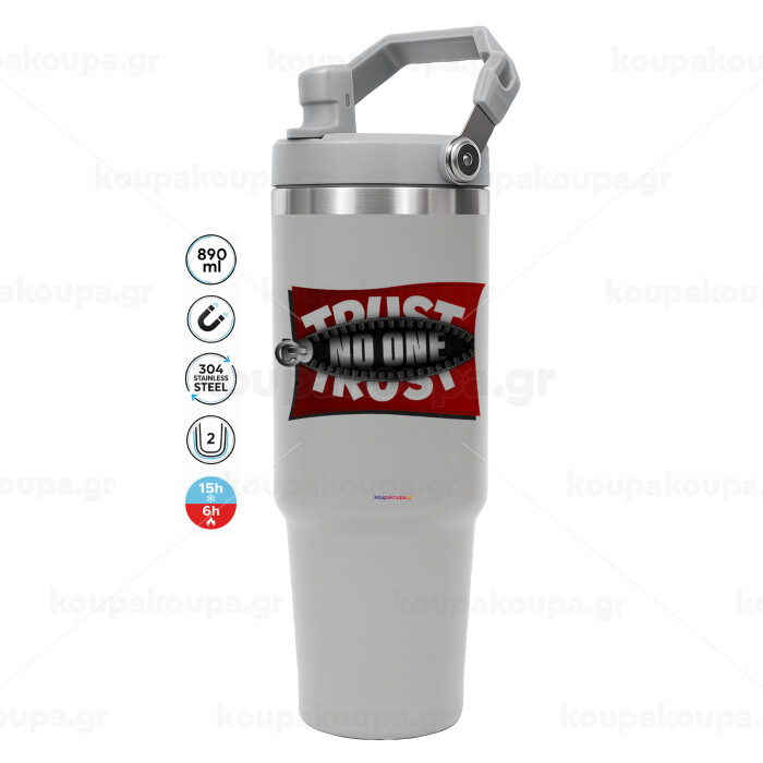 Trust no one... (zipper), ΓΚΡΙ χρώματος Θερμός Ανοξείδωτο 890ml (30oz) με χερούλι