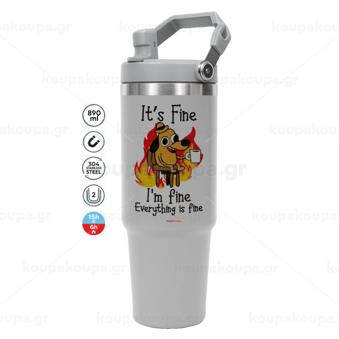 It's Fine I'm Fine Everything Is Fine, ΓΚΡΙ χρώματος Θερμός Ανοξείδωτο 890ml (30oz) με χερούλι