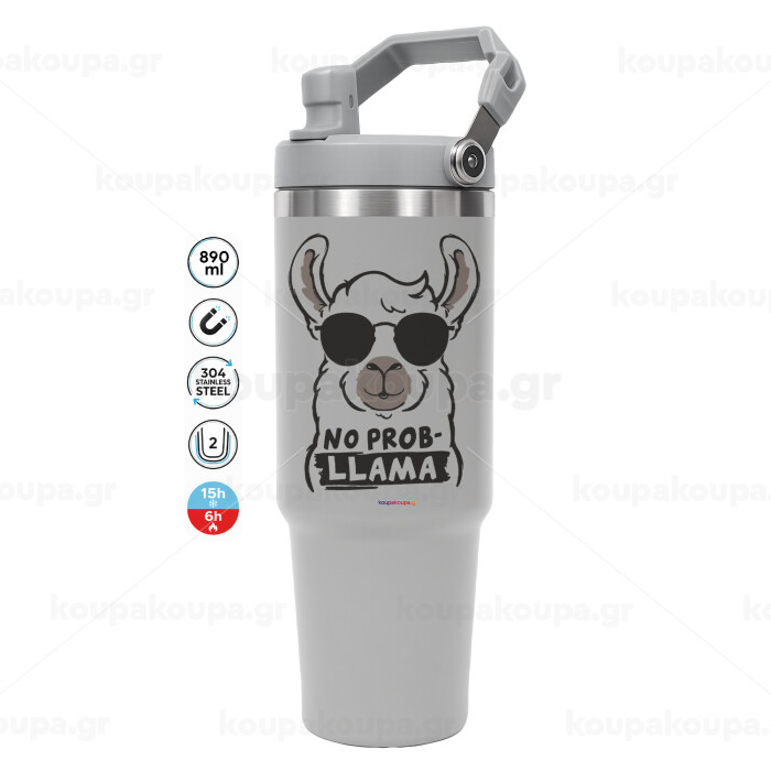 No Prob Llama, ΓΚΡΙ χρώματος Θερμός Ανοξείδωτο 890ml (30oz) με χερούλι