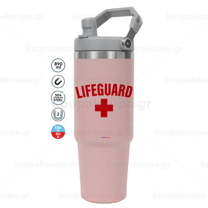Lifeguard, ΡΟΖ χρώματος Θερμός Ανοξείδωτο 890ml (30oz) με χερούλι