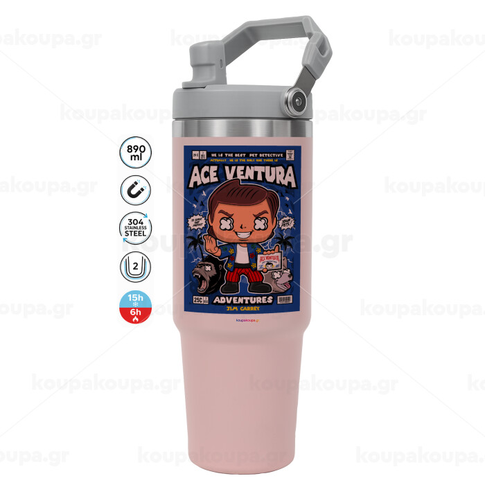 Ace Ventura: Pet Detective, ΡΟΖ χρώματος Θερμός Ανοξείδωτο 890ml (30oz) με χερούλι