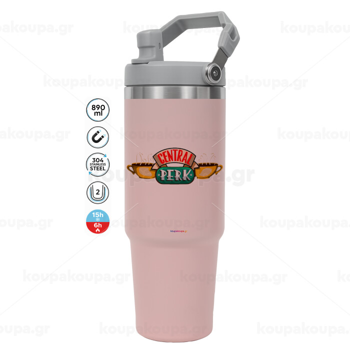 Central perk, ΡΟΖ χρώματος Θερμός Ανοξείδωτο 890ml (30oz) με χερούλι
