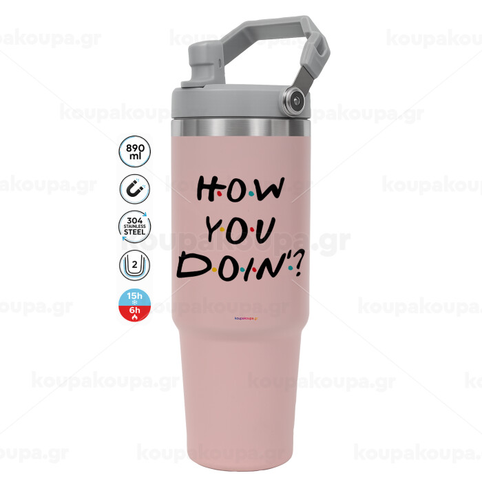 Friends How You Doin'?, ΡΟΖ χρώματος Θερμός Ανοξείδωτο 890ml (30oz) με χερούλι